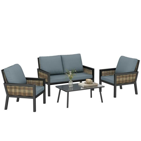 Designed for relaxed outdoor lounging, the Outsunny rattan garden furniture set brings a considered, contemporary look to patios and garden seating areas. This four-piece conversation set pairs a distinctive 11.5 mm round rattan weave with a sleek coffee table, creating an inviting spot for everyday catch-ups and casual entertaining.