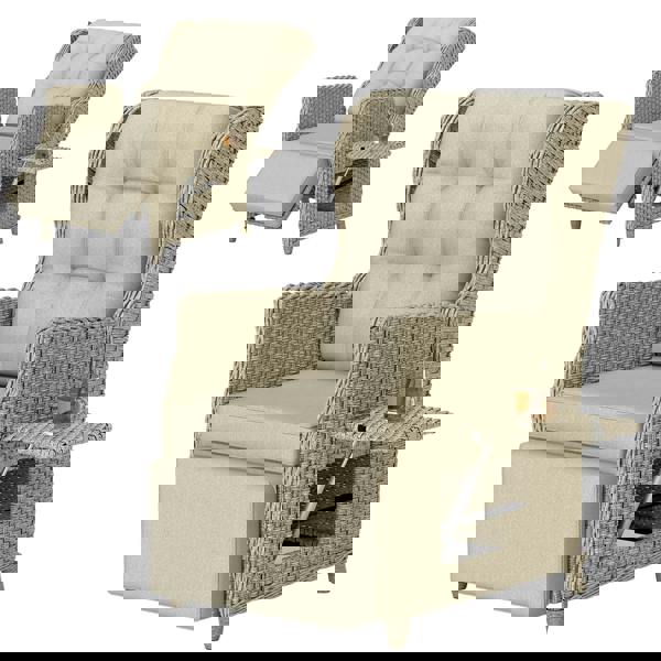 Forever on-trend rattan style, at an angle you want to relax, thanks to this Outsunny rattan reclining garden chair with footrest. The rattan recliner chair's back reclines from 90° to 120°, paired with footrest for full-body relaxation. Sink into the supportive integrated seat and footrest cushion and soft padding back cushion for plenty of comfort. Our rattan garden chair with flip-up side tray keeps items right next to you, turning your patio into a haven of tranquillity and cosiness.
