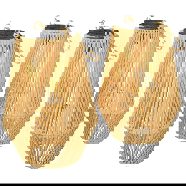 Finished in brown with a PE rattan shade, the lanterns cast a 2700K warm yellow light. Use them hanging or as a solar table lamp set to create a comfortable atmosphere wherever you place them. Built with a powder-coated metal frame and an IP44 water-resistant rating, they’re suitable for outdoor use in light to medium rain and snow.