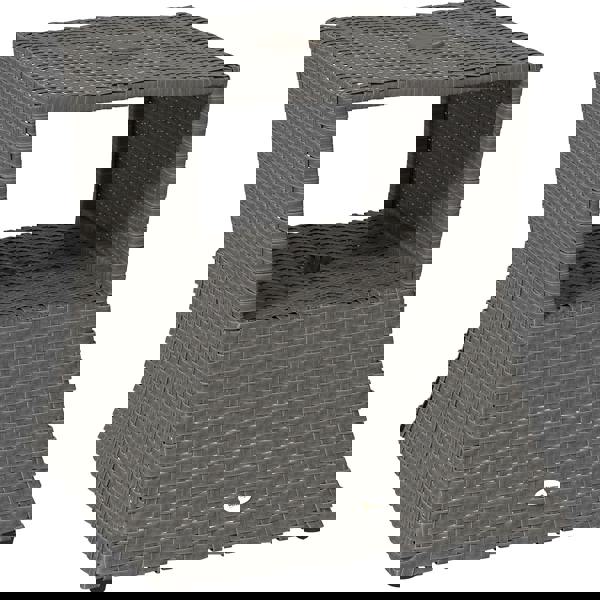 Bring a stylish feel to your coffee breaks with this rattan table from Outsunny. Made with weather-resistant PE wicker wrapped around a metal frame, this table has been built to withstand the weather, along with daily wear and tear to ensure it looks great for years to come. Easy to clean, it features a central hole to place a parasol umbrella, along with an open shelf in the middle to store your necessities when needed. It's a great addition to your garden, patio, conservatory or balcony.