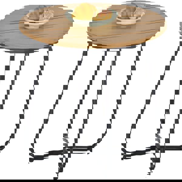 Bring a considered finishing touch to your outdoor seating area with the Outsunny round outdoor side table. Designed in natural wood and black, it offers a neat, compact surface that sits comfortably alongside loungers and garden chairs for everyday moments outside.