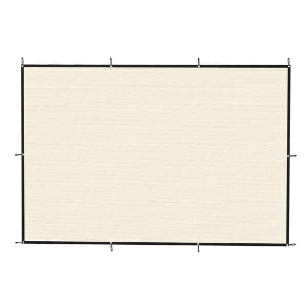 Along the edges, stainless steel eyelets support a secure installation, while the included elastic ball ropes are intended to make set-up straightforward. The material is water-permeable, making it a practical choice for a range of outdoor spaces, from pool areas to BBQ zones.