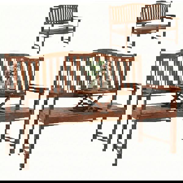 Does your garden lack a space that adapts to your changing needs? This can make your outdoor moments feel compromised. The Outsunny garden bench seat transforms from a three-seater to a two-seater with a handy liftable table. This tete a tete seat features a warm, embossed wood texture for elegance. The Included protective cover shields the patio bench, offering both enduring style and the peace of mind you deserve.