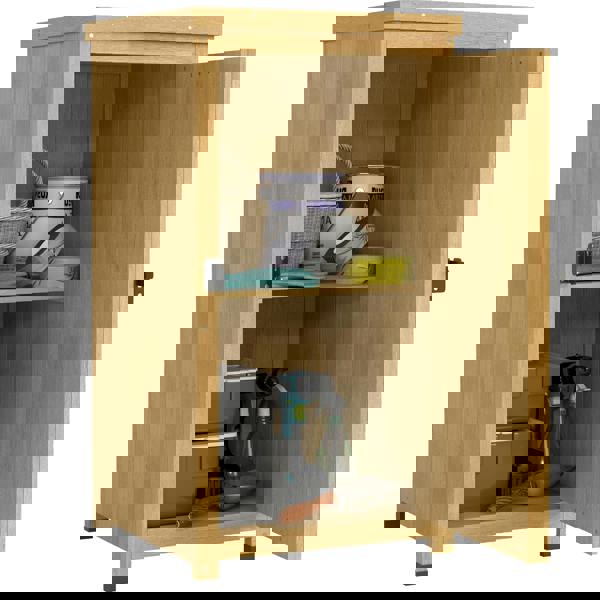 Designed for smaller outdoor spaces, the Wooden Garden Shed from Outsunny offers a neat way to keep gardening tools and supplies organised on a balcony or patio. Its compact footprint makes it easy to position in a corner, while the two-tier interior with a shelf helps separate everyday essentials for quicker access.