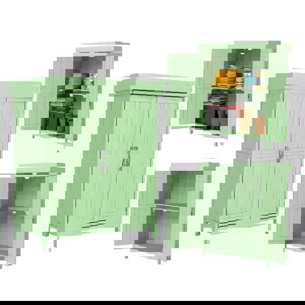 Keep your garden neat and tools in place with this compact Outsunny shed. Its lift-up hinged roof and double doors offer convenient access from both angles and while magnetic closures keep doors safely shut on windy days. Made of solid wood with a weather-resistant coating, this shed handles the outdoors and adds a natural touch. Two-tier shelves help you organise tools, flower potsand cleaning supplies. A practical and attractive tool shed for every tidy gardener.