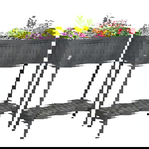 From Outsunny, this wooden Herb Planter Stand is a raised garden bed designed to give flowers, plants and herbs a neat, organised place to grow. Crafted from fir wood and finished with water-resistant paint all over, it is suitable for use both indoors and outdoors, while the dark grey colourway brings a clean, modern look to patios, balconies and conservatories.