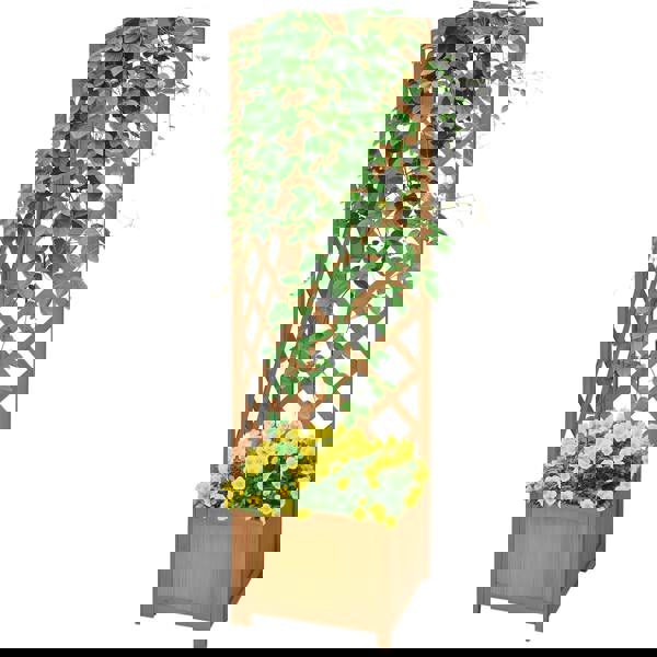 Bring a touch of vineyard-inspired character to your outdoor space with the Wooden Planter with Corner Trellis from Outsunny. Designed as a raised garden bed with two side lattices, it offers supportive structure for climbing plants while keeping your planting area lifted away from pets and wild animals.