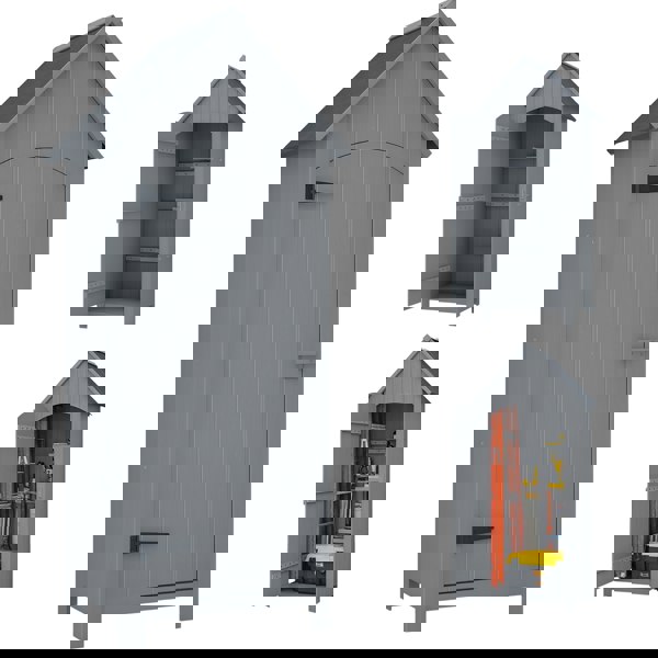 The Outsunny wooden small garden shed is a practical way to keep tools and outdoor equipment neatly organised in one dedicated place. Designed with a multi-storage layout, it combines tiered shelving for smaller items with an open section for taller and bulkier tools, helping you make the most of compact garden space.
