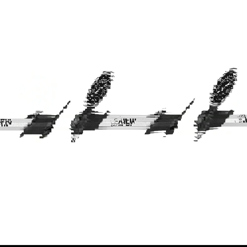 Key Features• Mechanical pressure gauge • 6" pivoting hose• Precision alloy barrel• Pressure release button• Max inflation 300 PSI
