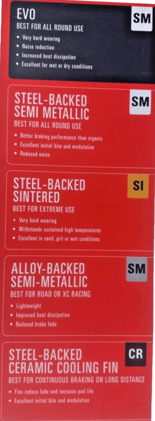 Please see the red card to see where these brake pads sit in the Oxford Range
