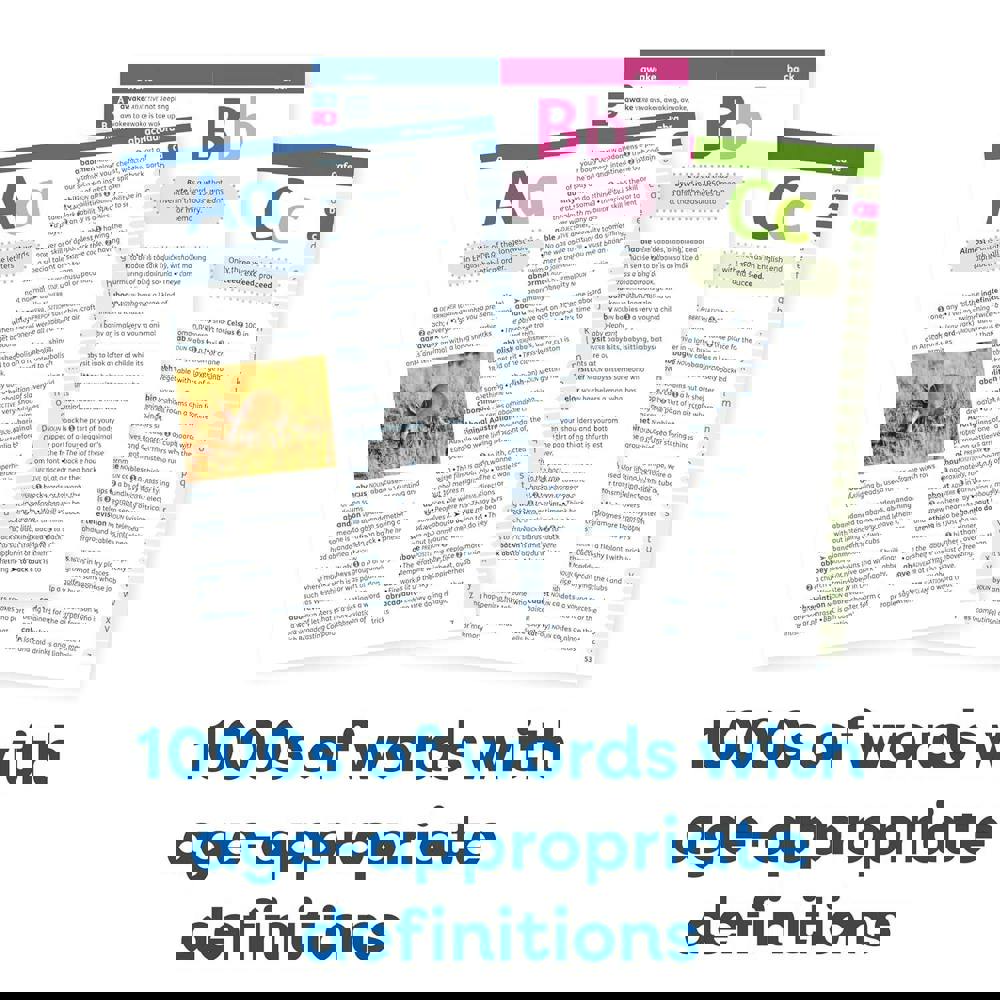 A full-colour layout with photographic images adds visual support, while alphabet thumb tabs make it quicker to navigate. The additional guidance on spelling, punctuation and grammar reinforces key primary-level English skills, making it a practical choice for schoolwork and homework at KS2.
