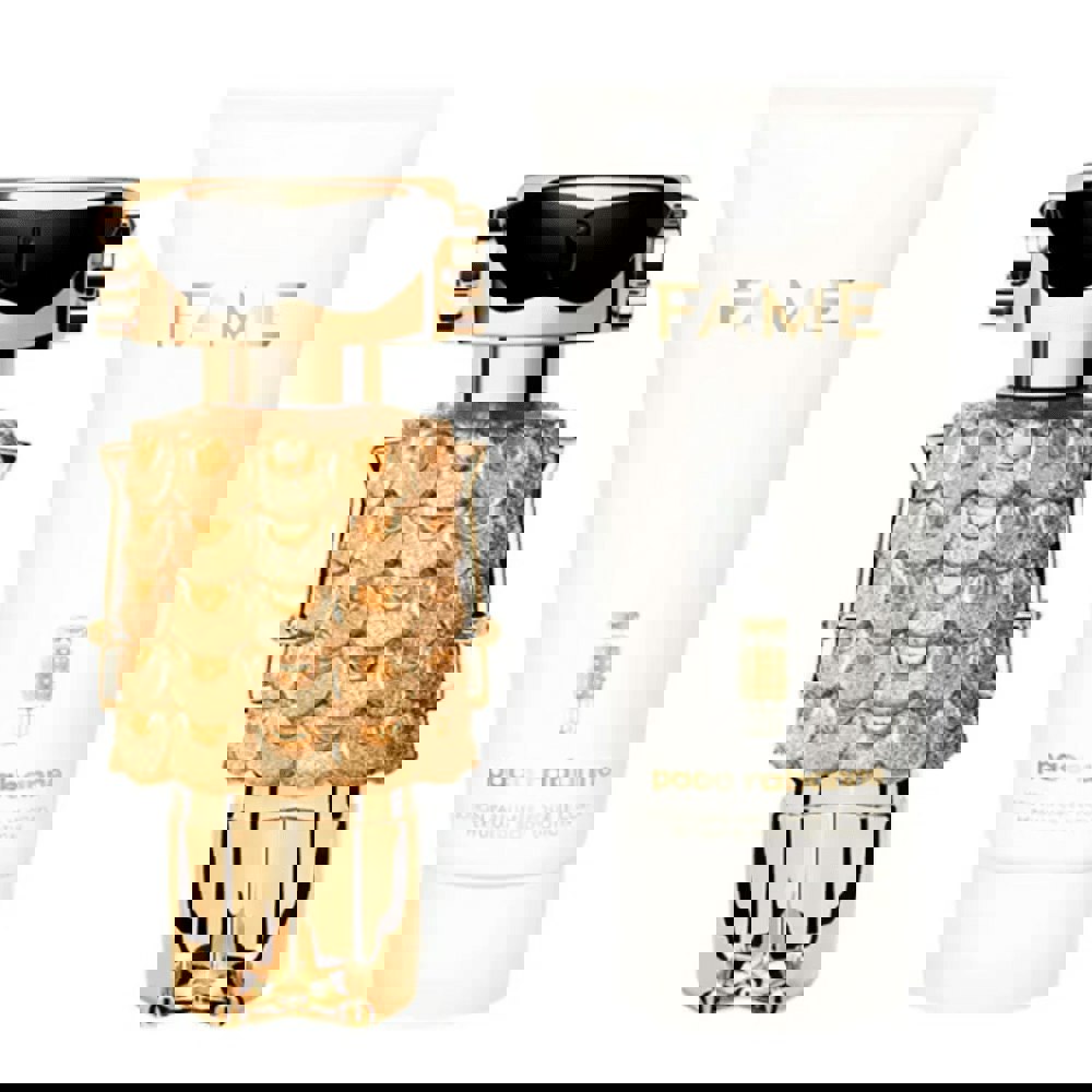 Discover the allure of the Paco Rabanne Fame Intense Gift Set. This exquisite set features a 50ml Eau de Parfum Spray, delivering an irresistible and long-lasting fragrance, complemented by a luxurious 75ml Body Lotion that nourishes and hydrates the skin. Perfect for those who appreciate sophistication and elegance, this gift set is ideal for any occasion. Experience the harmonious blend of notes that define this captivating fragrance.