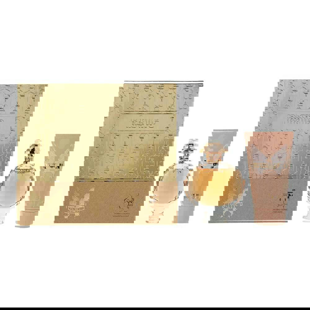 Paco Rabanne Olympéa is a women’s fragrance presented here as a two-piece gift set, pairing the Eau de Parfum with a matching body lotion. The scent is widely known for its modern, sensual character, balancing fresh, luminous notes with a distinctive salty-vanilla warmth.