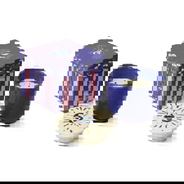 Luck, love, and a little bit of magic. This new collection from Paddywax brings whimsy and wonder with every design. Each bold glass candle is topped with a ceramic lid featuring a hand-painted charm, surrounded by gold rays.