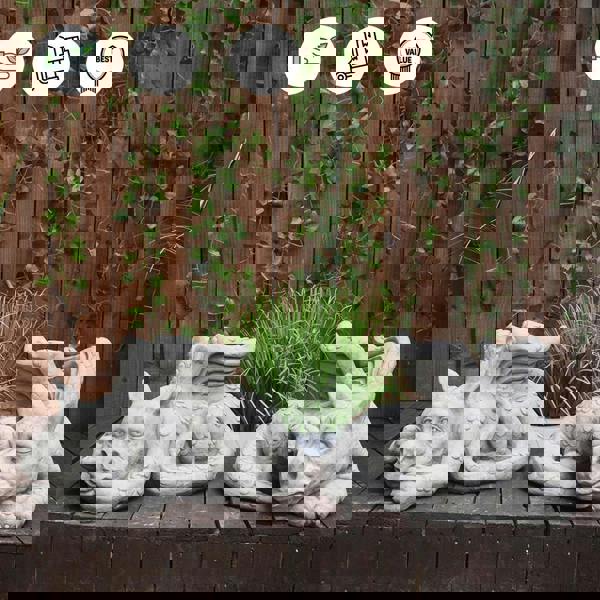 Very delightful Large pair of Dragon garden ornaments displaying flying dragons, one is waking up and another sleeping mythical creature. Lots of character and humour, a real pleasure to have in the yard or patio. One has just woken up and the other dragon is still sleepy. Superb detail, very heavy and real eye catchers.