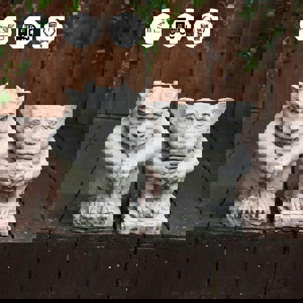 Superb muscular gargoyle figurines will add a gothic surrounding wherever you choose to display them. Can be used outside in the garden or in the house. These charming gargoyles with horns and big ears are lovely garden arrangements to any outdoors. Gothic sentinels are ready to pounce on unsuspecting predators to your home or garden!