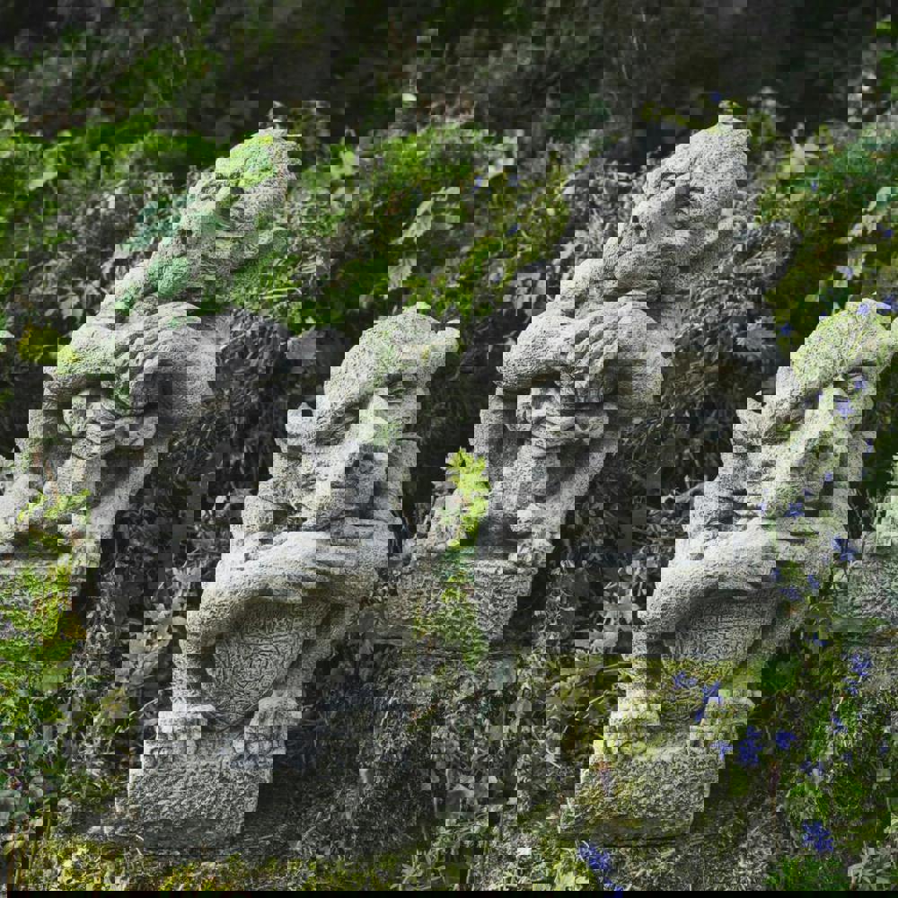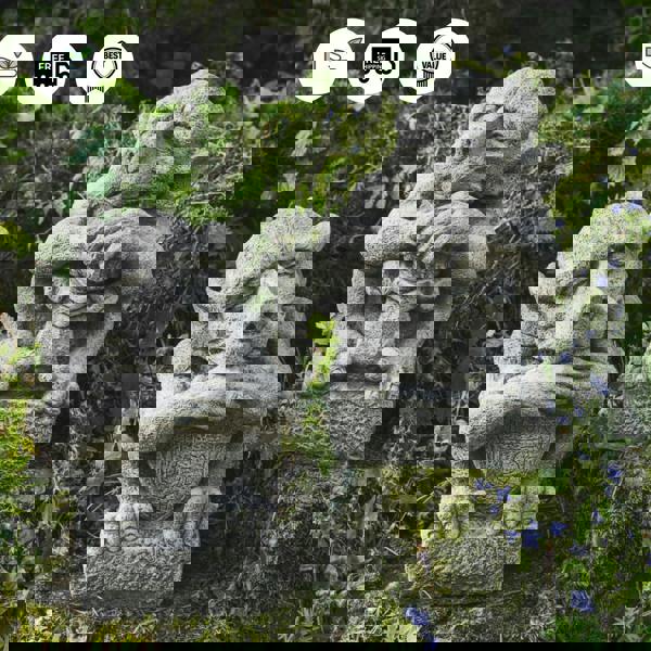 Very detailed pair of amazing solid stone cast pair of gargoyles featuring mythical creatures holding one a Sword and another Shield. Intricate details and the mythological meaning would definitely add special ambience to your garden or any outdoor space. A perfect pair to add to gate posts or entranceways. A great decoration to add extra detail and set an atmosphere in your garden. Use it to add interest to an otherwise dull corner or to hide an unsightly drain cover.