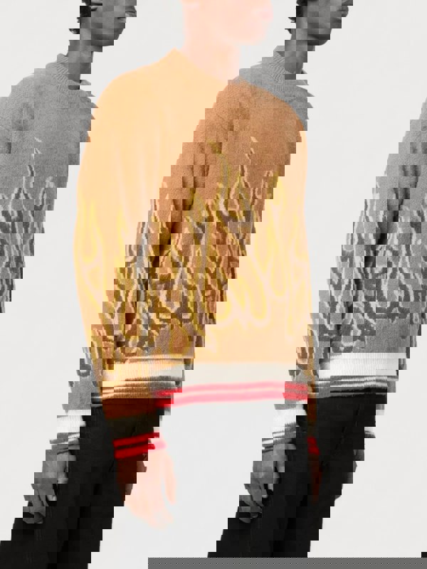 Experience the bold style and exceptional comfort of the Palm Angels Burning Flame Drop Shoulder Sweater in rich brown