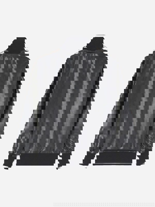 Palm Angels combines Italian craftsmanship with Californian imagery. This girls’ track jacket comes in black with a coated faux leather finish and side stripe detailing. A baseball collar and ribbed trim frame the silhouette, while long sleeves and a straight hem keep the shape clean and structured. An embroidered logo at the chest adds a clear brand sign-off.