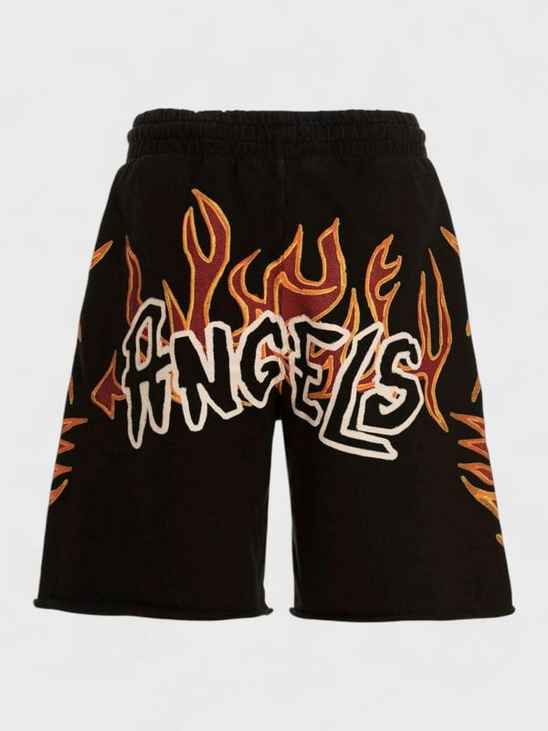 These Palm Angels Graffiti Flames Sweatshorts in black bring bold streetwear vibes with their standout flame graphics