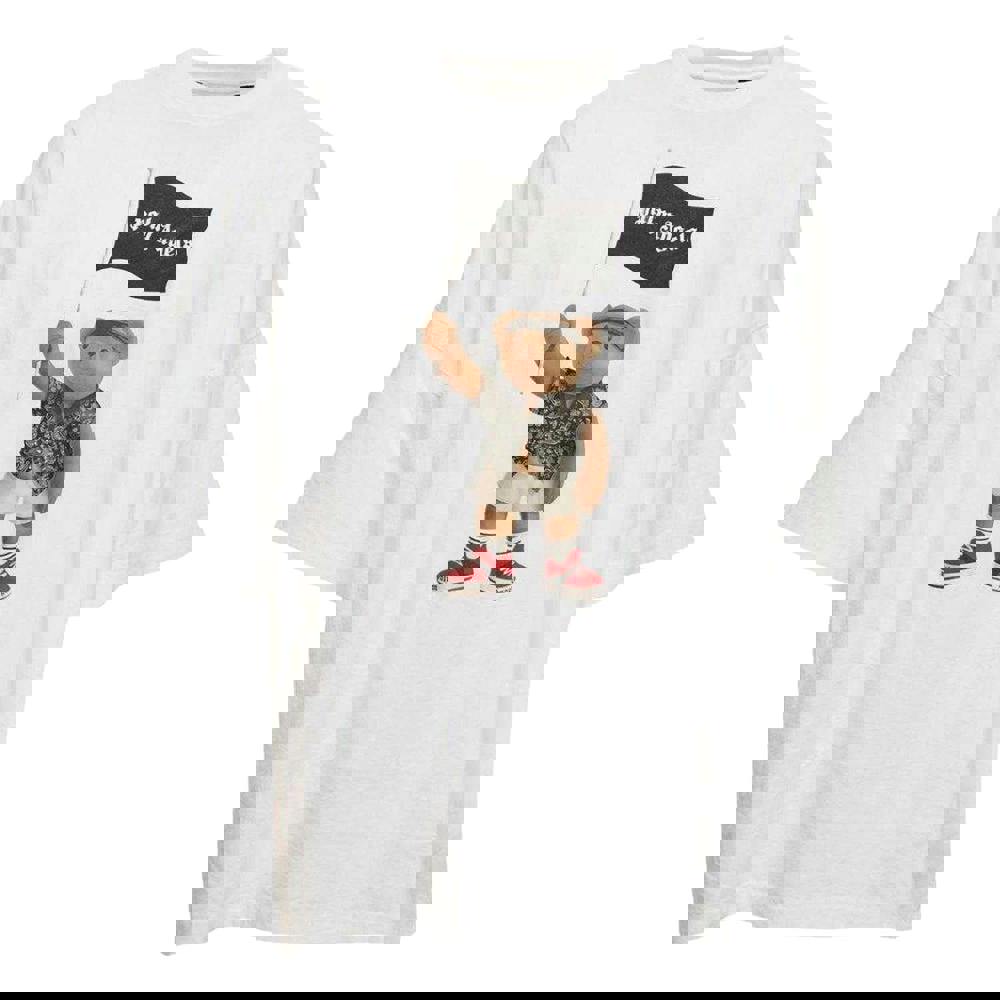 This unisex adult T-shirt comes in white with a printed design. It is made from 100% cotton and finished with a crew neckline and short sleeves. The loose fit gives it a relaxed shape for everyday wear.