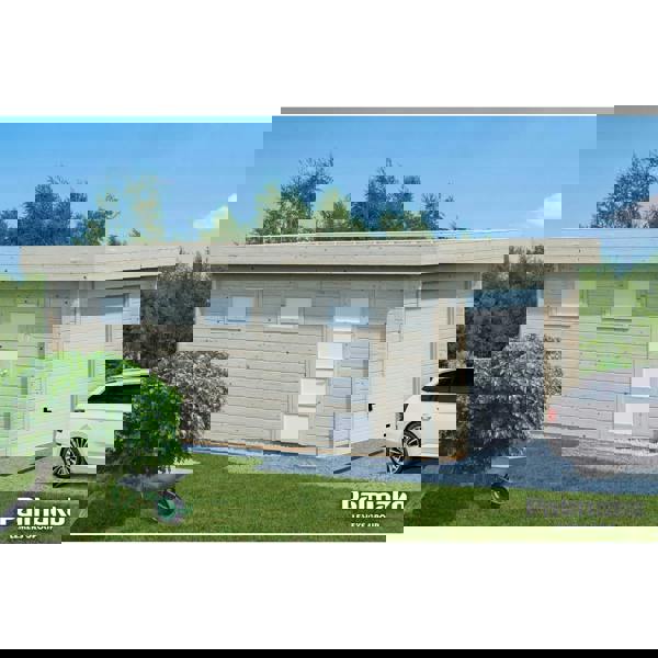 Designed for a discreet garden presence, the Palmako Rasmus 19.0m² Garage pairs a low-profile, nearly flat roof with log cabin-style chalet corner jointing for added durability and weather resistance. High-line windows bring in natural light, while the inclusion of pedestrian access makes it a practical choice whether you’re creating a dedicated garden garage or setting up a workshop space.