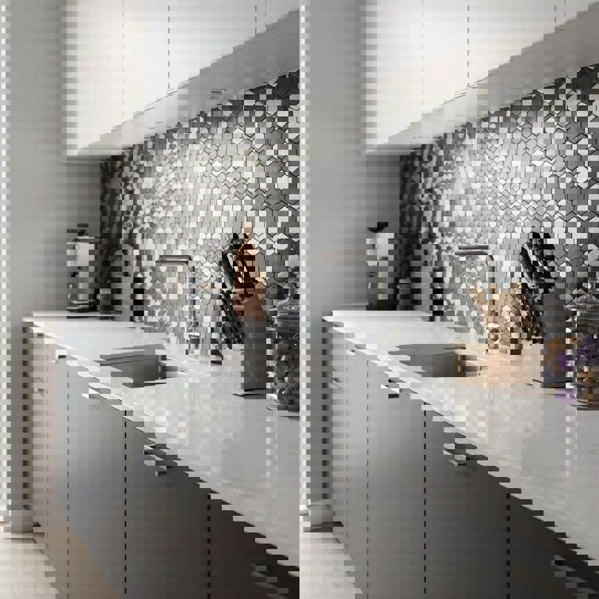 Featuring a stunning brushed metallic finish, these precision-cut tiles create a multi-dimensional look that plays with light and shadow. Unlike traditional tiling, our panels provide a continuous, high-quality aesthetic that feels as premium as it looks. Whether you’re creating a contemporary kitchen backsplash or a sleek feature wall, the geometric symmetry adds an instant touch of architectural elegance.