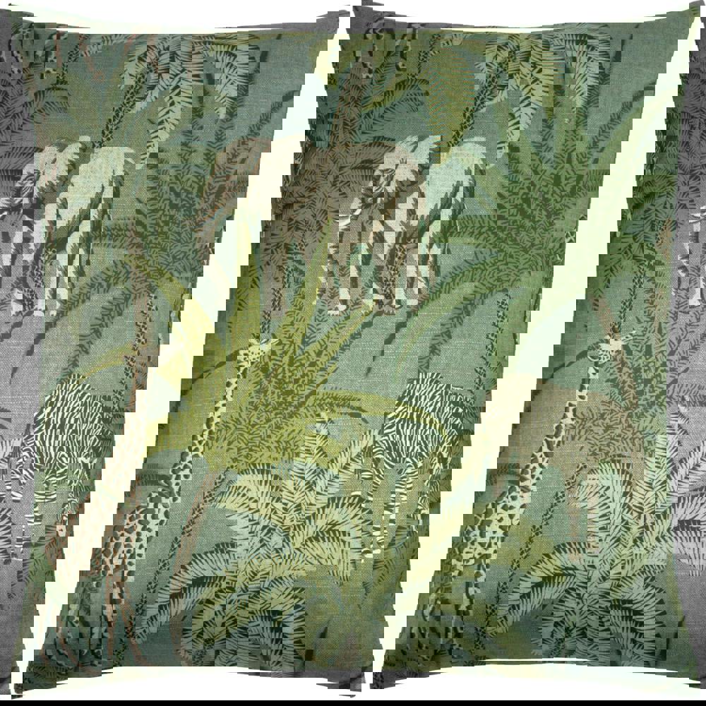 The Paoletti Jungle Parade Cushion Cover in green is designed to refresh your space with a bold animal and tree motif on the front, paired with a plain reverse for a cleaner look when you want a more understated finish. Made from 100% polyester velvet, it offers a soft feel that suits everyday use in the living room or bedroom.