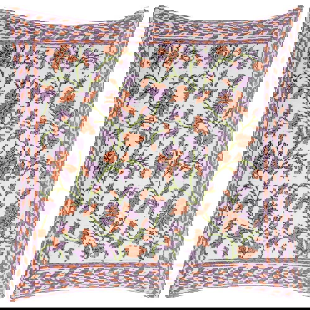 The Paoletti Mentera Velvet Floral Cushion Cover in lilac and coral is designed to refresh your soft furnishings with a patterned finish and a plain reverse. Featuring a bordered design with diamond, floral and Mediterranean tile-inspired detailing, it brings colour and visual interest to sofas, armchairs or beds while keeping your look easy to update.