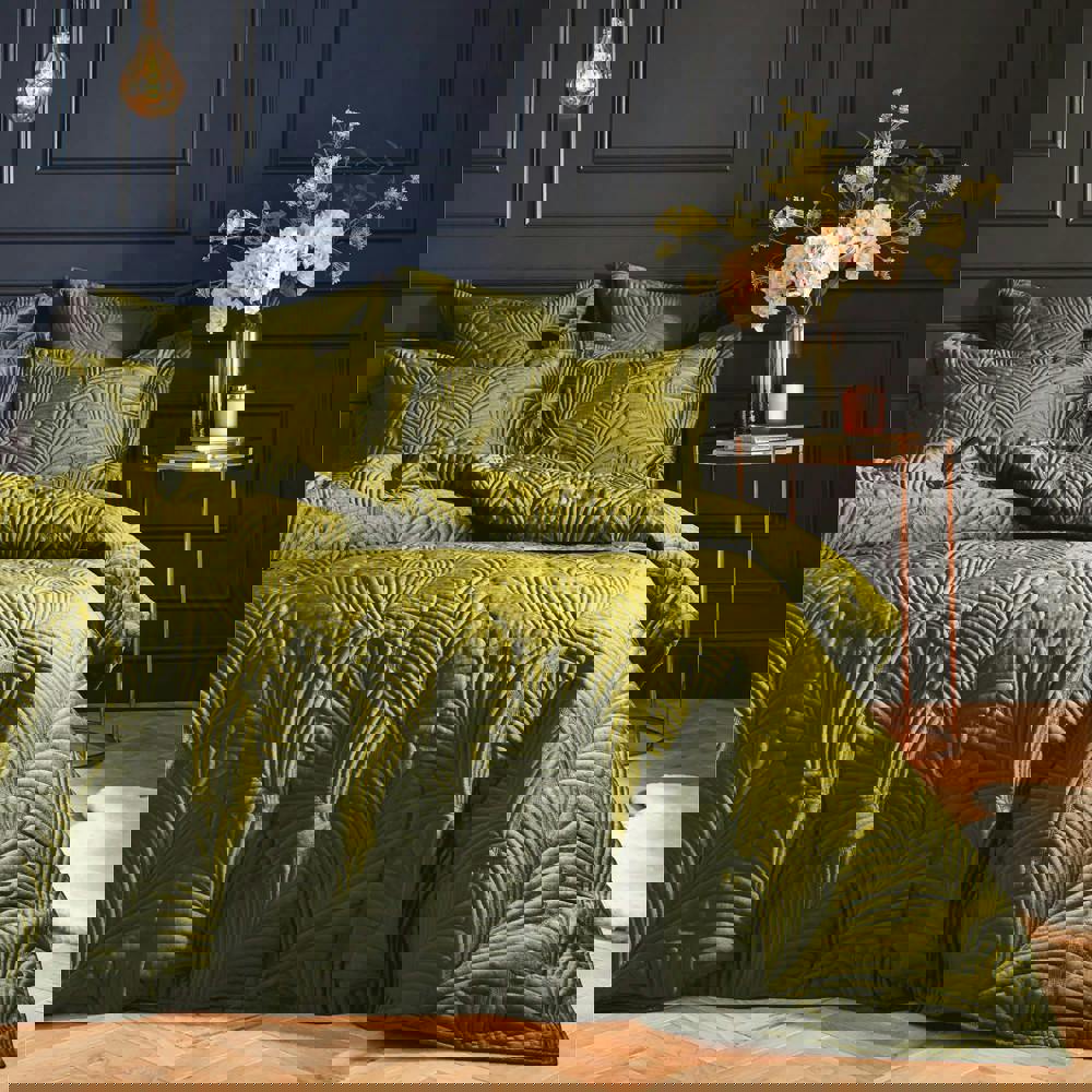 The Paoletti Palmeria Velvet Quilted Duvet Cover Set in Moss is designed to dress your bed with a soft-touch finish and detailed texture. Featuring an embroidered and quilted design, it adds visual interest while keeping your bedding looking neat and considered.