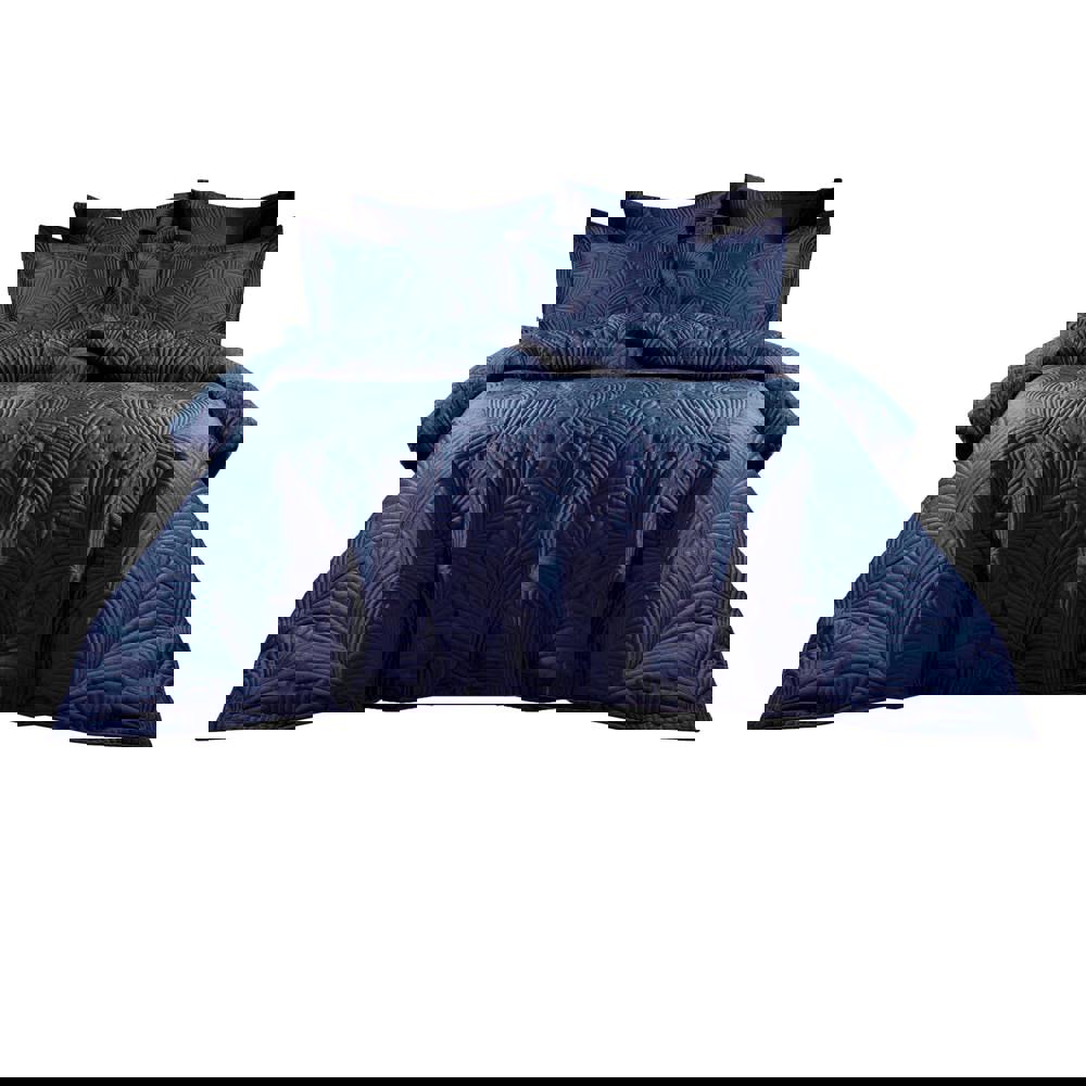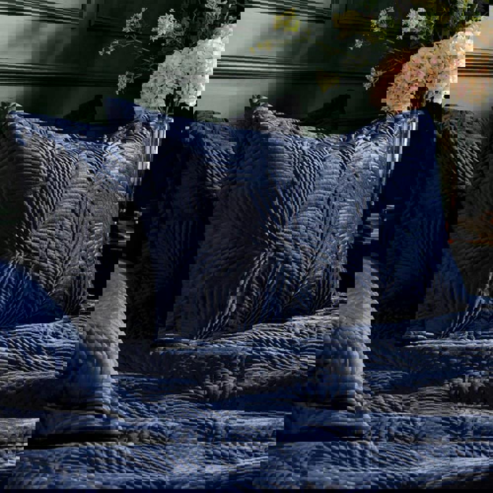 The Paoletti Palmeria Velvet Quilted Duvet Cover Set in navy is designed to bring a soft-touch finish to your bedding. With a quilted velvet feel and embroidered detailing, it adds texture and visual interest while keeping your bed looking neatly styled.