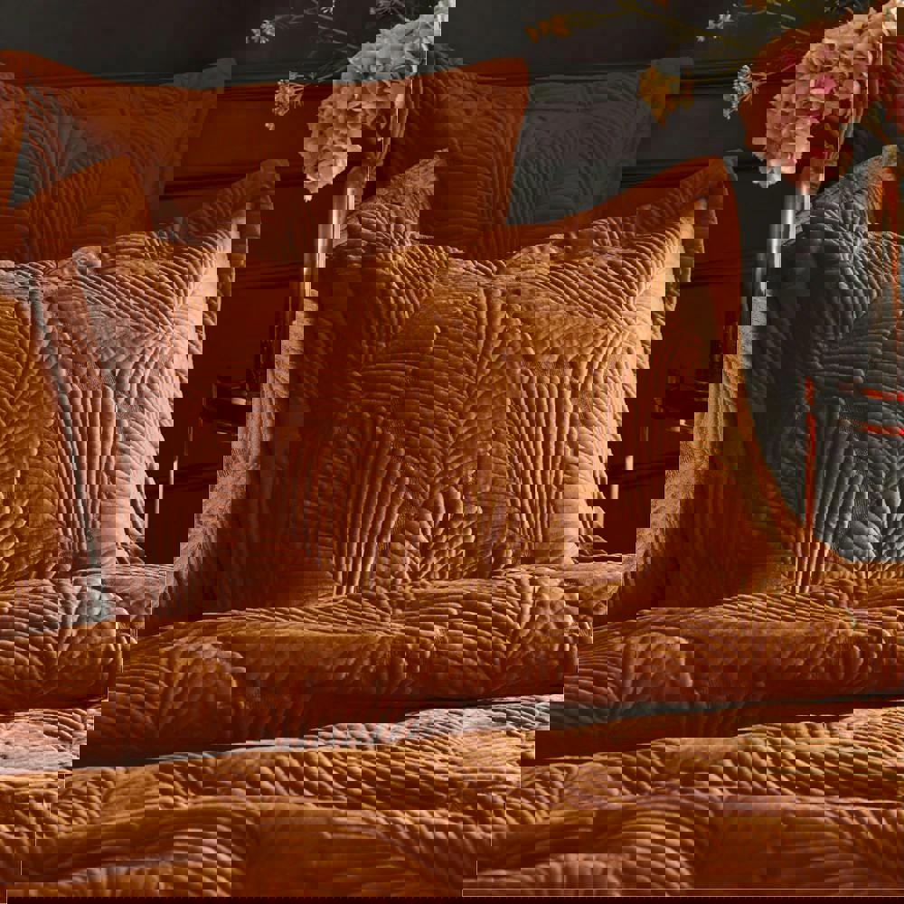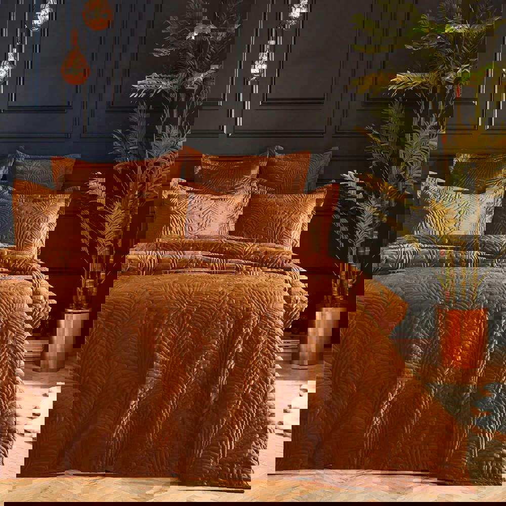 The Paoletti Palmeria Velvet Quilted Duvet Cover Set in rust is designed to refresh your bedding with a soft-touch finish and decorative detailing. Featuring an embroidered, quilted design, it adds texture and visual interest while keeping your bed looking neatly styled.