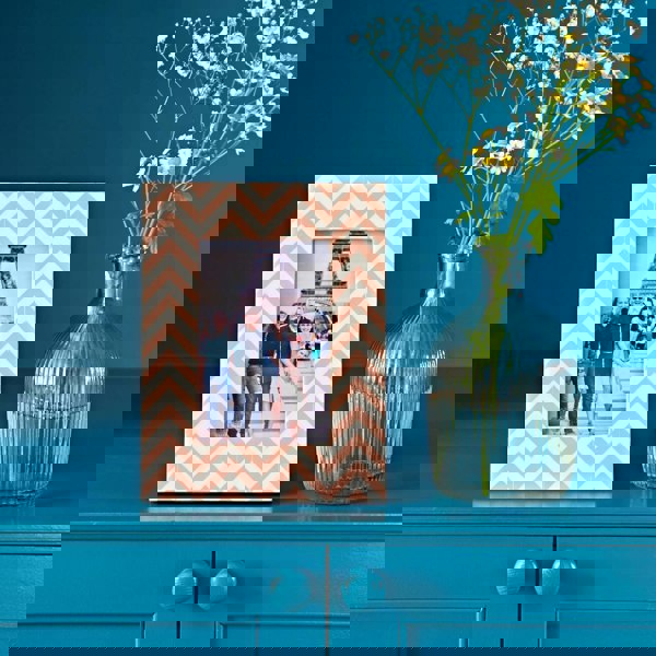 This handmade photo frame features individual pink and white tiles placed together in a chevron pattern, by Fair Trade artisans. No two frames are identical, making it the perfect meaningful gift for a thoughtful birthday, new home, christening, wedding or anniversary.