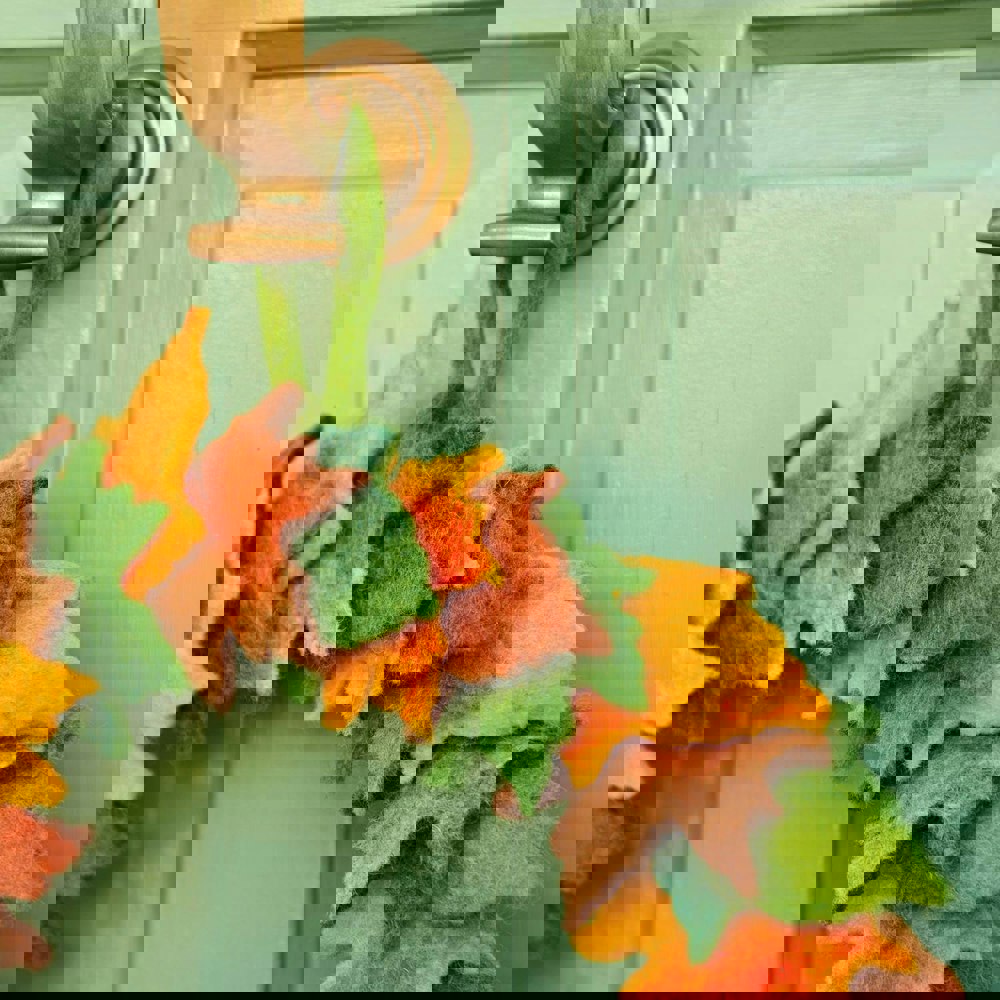 Welcome the autumnal season in style with our handmade felt wreath, featuring a mixture of seasonal accents. Carefully crafted from soft, high-quality felt, this wreath brings a cozy, autumn touch to any door, wall, or mantel.