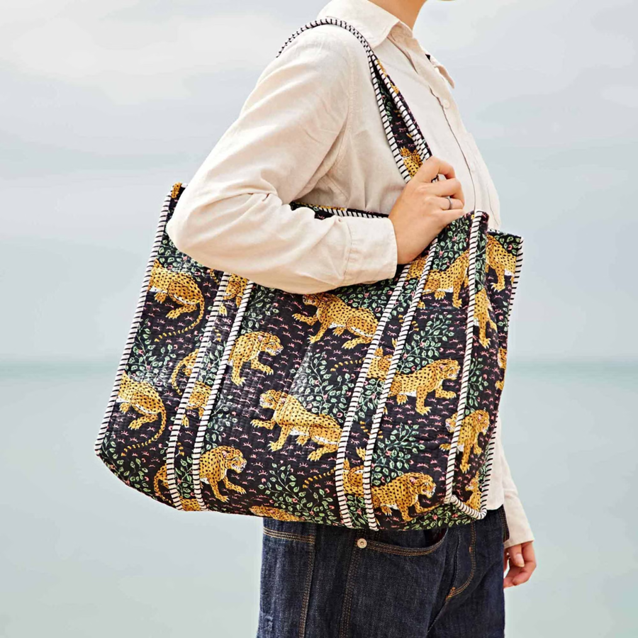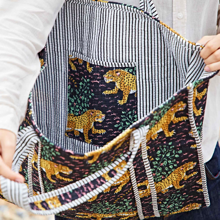 Lovingly handmade by skilled artisans in India, each tote is crafted from 100% natural cotton. Every bag is sewn in small batches, making each one truly one of a kind.