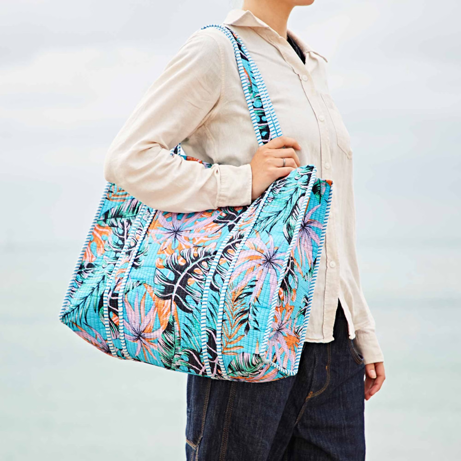 Paper High Reversible Tropical Print Quilted Cotton Tote Bag