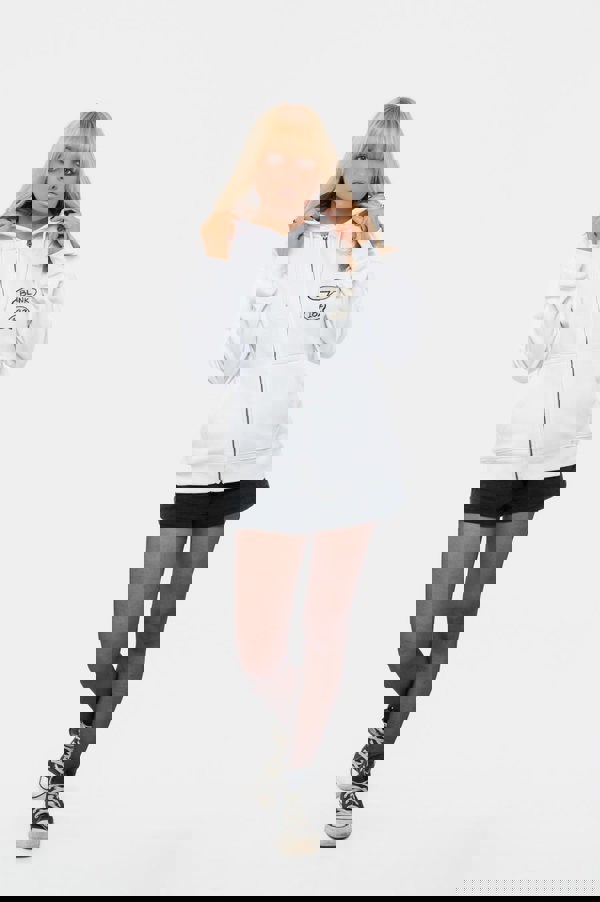 An official licensed Blink-182 Unisex Zipped Hoodie featuring the 'Roger Rabbit' design motif. This high quality Zipped Hoodie is available in a white colourway. High quality cotton zipped hoodie with long sleeves, hood with drawstring and pouch pockets. Features front and back printing. IMPORTANT: Sizes are slightly smaller than normal, please order the next size up. Comes in a wide range of sizes from Small through XX-Large, subject to availability.