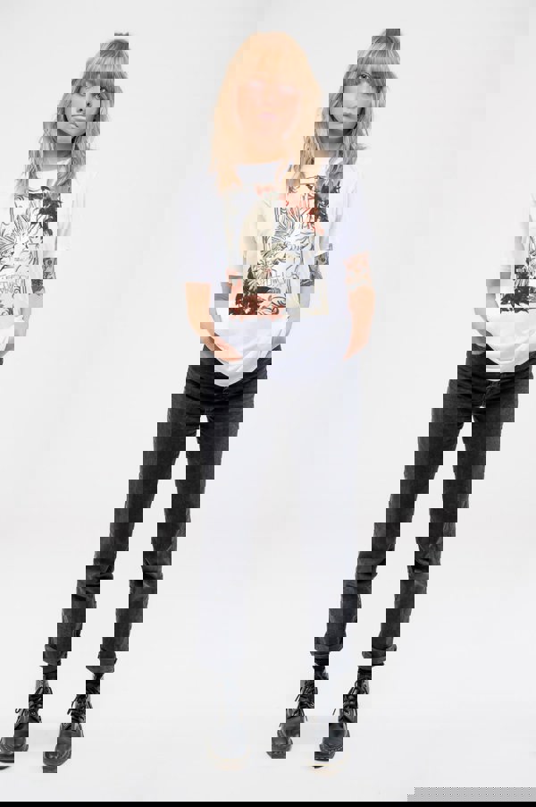 An official licensed Fleetwood Mac Ladies T-Shirt featuring the 'Dove' design motif. This high quality T-Shirt is available in a white colourway. High quality soft-style cotton ladies t-shirt featuring front printing. Comes in a wide range of sizes from Small through XX-Large, subject to availability.