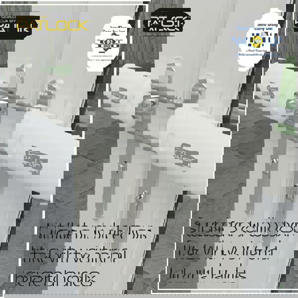 Patlock Instant French door security lock is the only lock of its kind available with the Police preferred specified “Secured by Design” accreditation and is recommended by Police forces and crime prevention organisations throughout the UK. Fitted and released in seconds with ratchet locking bars, no keys or number codes required, providing instant security and peace of mind. Designed to deter and stop intruders, Patlock is suitable for double doors fitted with 2 horizontal handles, securing patio doors, French doors and conservatories instantly. The only lock of its kind to be supplied with Patent protected, tamper resist steel Door Spindles, providing a further level of security only found with Patlock.