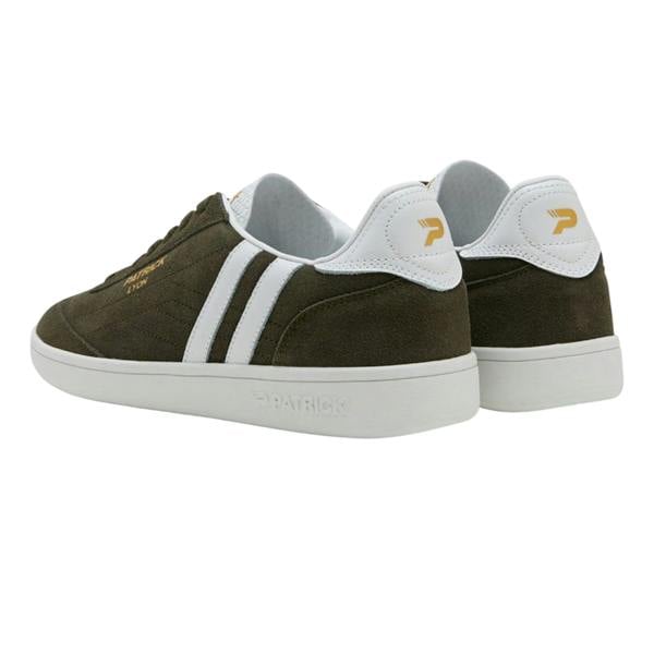 Clean and understated, the Patrick Lyon Cupsole Trainers bring a low-profile finish to everyday looks. This mens style pairs a suede upper with a leather panel, set off by tonal stitching for a refined, tonal look. In olive and white, the silhouette is kept classic with a round toe and a flat, low cut that sits neatly with jeans or chinos.