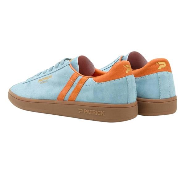 Clean lines and a classic cupsole profile define the Patrick Monaco trainers. Made for men, this low-cut style pairs a suede upper with a textile lining for a considered finish. Light blue is set against orange accents, while a suede panel adds subtle texture. A round toe and flat sole keep the silhouette streamlined, finished with a lace-up fastening and Patrick logo detailing.