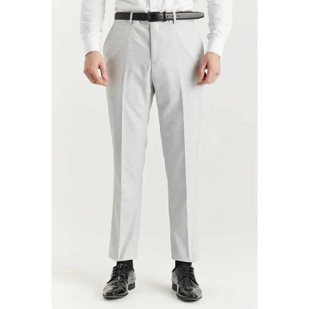 * Tailored Fit for a Sharp Look: These light grey wedding suit trousers are designed with a tailored fit, offering a sleek and flattering silhouette for a polished appearance at formal events