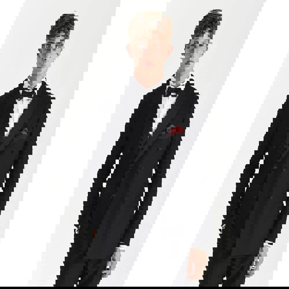 * Distinctive Double-Breasted Design: Showcases a sharp, structured silhouette that conveys confidence and modern style, perfect for formal occasions or black-tie events