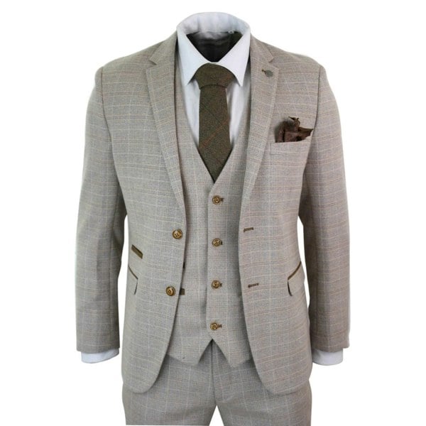 • Mens Tailored Fit 3 Piece Herringbone Check Suit