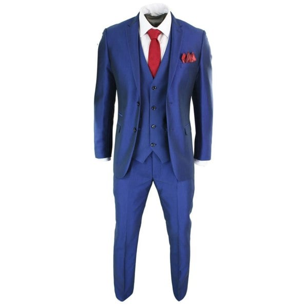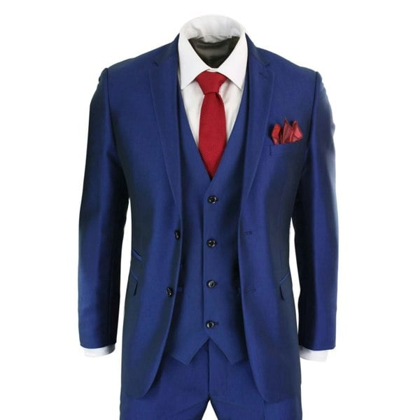 * Mens 3 Piece Blue Shiny Suit