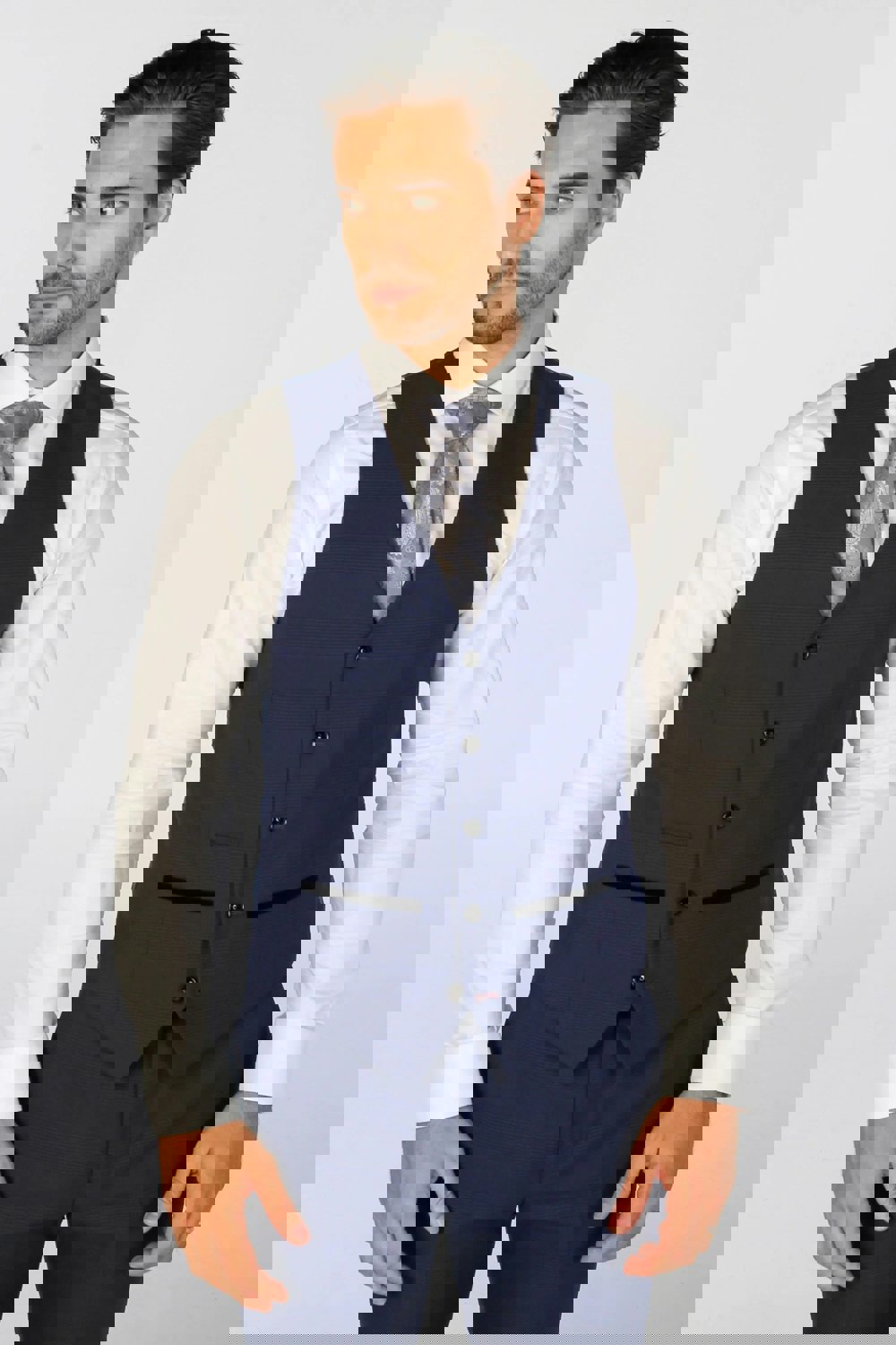 * Checked Pattern: This waistcoat features a classic navy blue checked design, adding a sophisticated touch to both formal and semi-formal attire