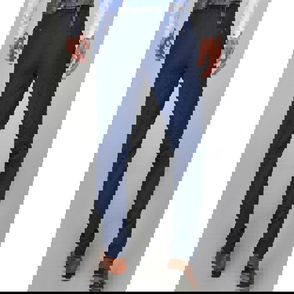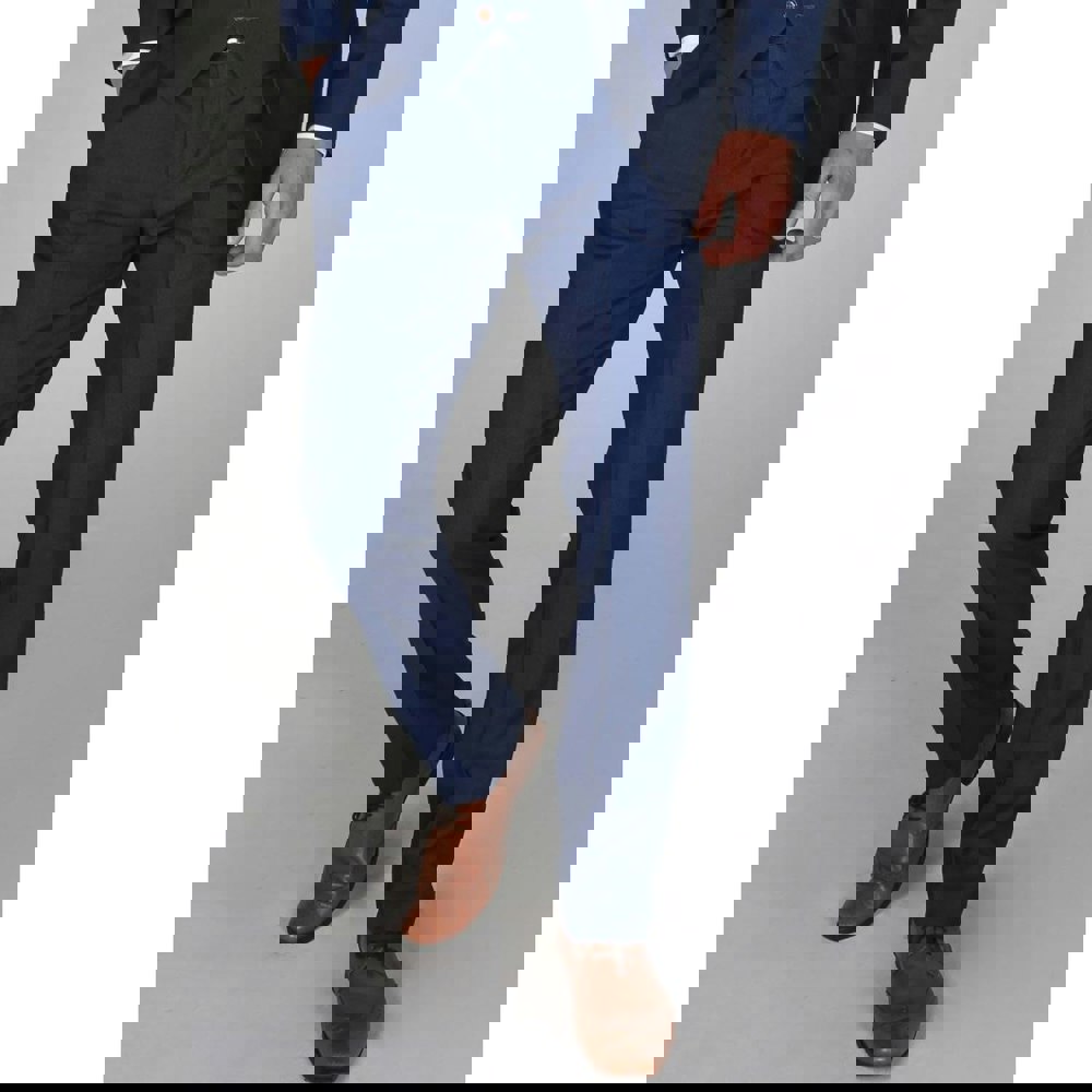 * Timeless Elegance: Elevate your wardrobe with the Mayfair blue trousers, a stunning and timeless piece that exudes sophistication and style.