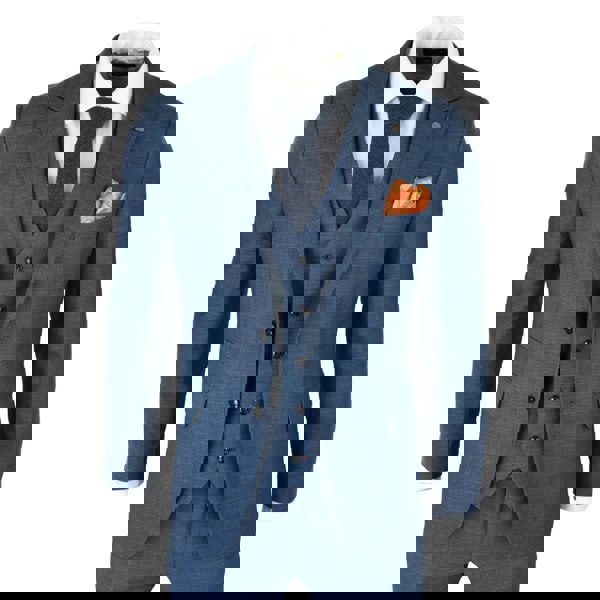* Blue Light Weight Prince Of Wales Check Suit, True 1920s Classic Italian Vintage Fashion With A Modern Twist