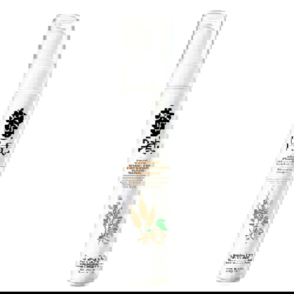 A waterless formula created for pets as a leave on foam shampoo to cleanse and refresh pets coats