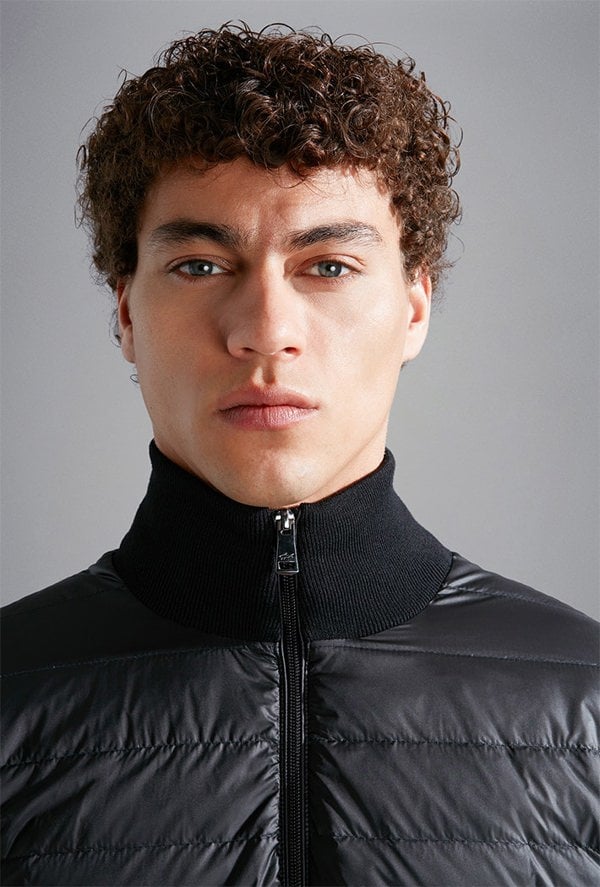 Full zip Cardigan in gauge 12 wool and quilted bust of ultra-lightweight nylon